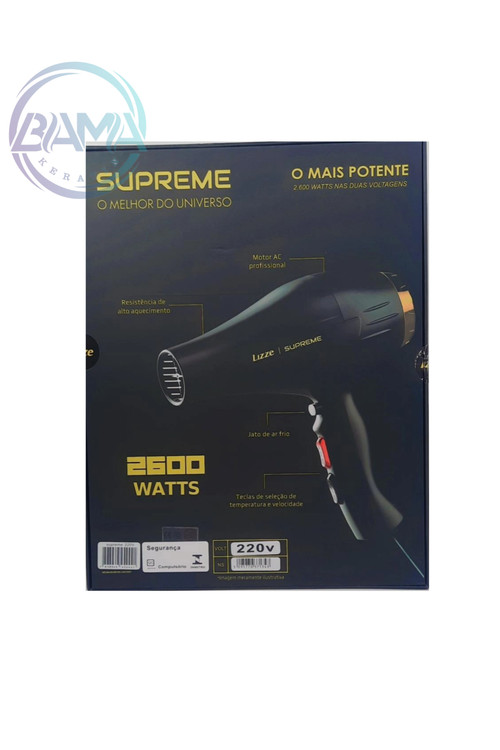سشوار لیز سوپریم Lizze Supreme با تاییدیه استاندارد اروپا CE و طراحی حرفه ای مناسب استفاده شخصی و سالنی هست که یک سشوار بسیار پرقدرت با موتور AC و توان واقعی 2600 وات هست که تایم خشک کردن موها رو نصف می کند لذا علاوه بر صرفه جویی در زمان،سلامت مو را هم حفظ می کند.طوریکه موفق به کسب استاندارد اروپایی ضمانت سلامت مو شده است.سشوار لیز سوپریم مجهز به دو حالت تنظیم سرعت و دو حالت تنظیم دما هست که می توانید با توجه به جنس و مدل مو دمای مناسب را انتخاب کنید.همچنین دکمه کول شات(باد سرد سریع)کمک می کند بعد از اتمام حالت دهی موها به منظور تثبیت و دوام حالت مو از آن بهره ببرید.برای عملکرد بهتر سشوار لیز سوپریم وقتی درجه دمای المنت حرارتی آن از یک گستره ای فراتر برود دستگاه به صورت خودکار خاموش خواهد شد از طرفی فیلتر این دستگاه قابل جدا شدن و شستشو هست لذا در صورت وجود گرد و غبار برای حفظ قدرت موتور و پرتاب باد بهتر به راحتی می توانید فیلتر را تمیز کنید.لازم به ذکر است این محصول دارای بدنه بسیار باکیفیت و مقاوم در برابر حرارت بالا است. همچنین دارای کابل بلند و ضخیم 3 متری جهت آزادی عمل بهتر هست.