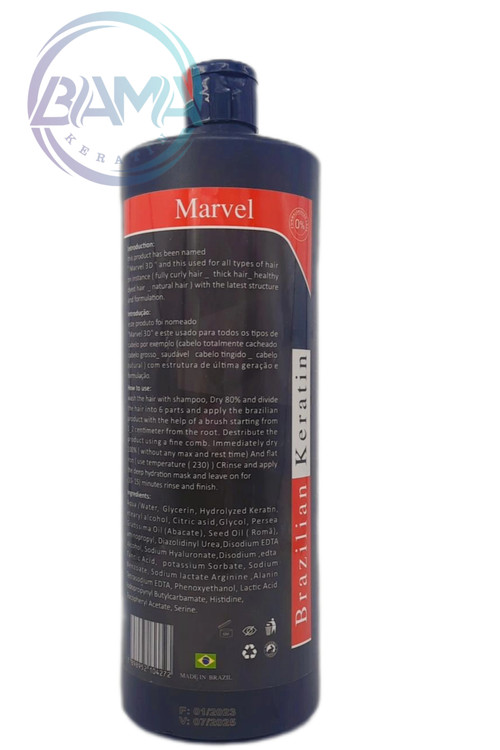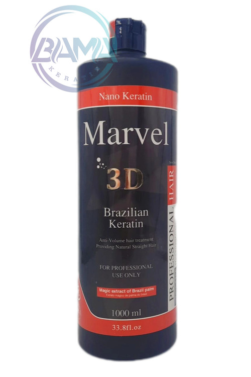کراتین مو مارول 3D یک کراتین فوق العاده عالی برای موهای طبیعی، رنگ شده سالم، مجعد و ضخیم می باشد. ویژگی منحصر بفرد کراتین مارول 3D این است که بعد از موادگذاری نیاز به تایم مکث و استراحت ندارد. همین امر سبب می شود که فرآیند کراتینه کردن مو با سرعت بسیار بیشتری صورت پذیرد. صافی کراتین مارول صددرصد است و بدون قرنطینه، دارای ماندگاری بالای یکسال است.