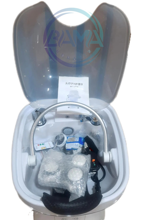 • دستگاه ایستاده سرشور برقی بدنه پلاستیک مجهز به یک شیر هلالی و آبشاری مانند است که برای درمان مشکلی به نام اسکال مو مورد استفاده قرار میگیرد.